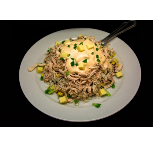 €9,60Ρύζι μπασματι,μπέικον,πιπεριές,καλαμπόκι,αυγο,ντοματινια,pink sauce edam